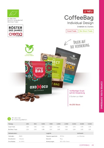 2 Sorten zur Wahl 2 Sorten zur Wahl COFFEE FLYER, COFFEEBAG