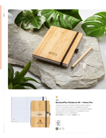 liniertes, recyceltes FSC Mix Papier (80 g/m²). Inklusive Bambus-Bleistift