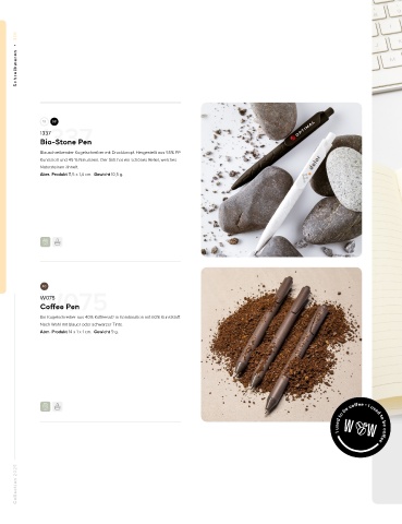 Ein Kugelschreiber aus 40% Kaffeesatz in Kombination mit 60% Kunststoff.