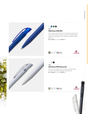 Blauschreibender Kugelschreibe. Das matte Gehäuse besteht aus PLA,