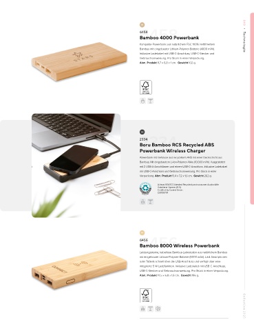 Bambus. Mit eingebautem Li-Ion-Polymer-Akku (10.000 mAh). Ausgestattet