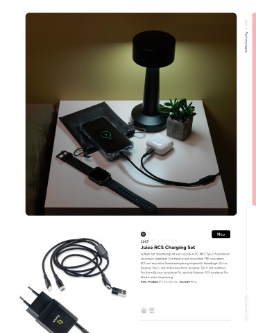 und einem Ladekabel. Das Kabel ist aus recyceltem TPE, recyceltem