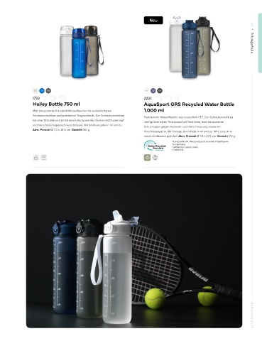 verfügt über einen Trinkauslauf mit Strohhalm, eine transparente