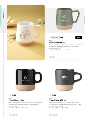 Becher mit Henkel, aus hochwertiger Keramik und 5% recycelter Keramik. Stapelbarer Becher mit Henkel, aus hochwertiger Keramik und 5%
