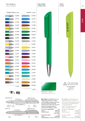 Colour code/Refills 0-0185 SI GUM 0-0183 F 193
