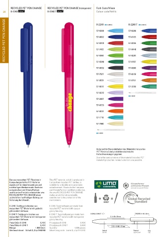 RECYCLED PET PEN CHANGE RECYCLED PET PEN CHANGE transparent Farb-Code/Minen