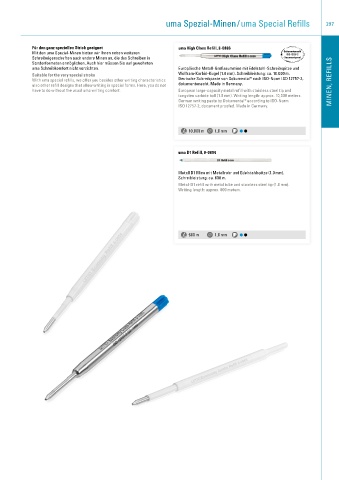 With uma special refills, we offer you besides other writing characteristics Deutsche Schreibpaste von Dokumental® nach ISO-Norm ISO 12757-2, MINEN, REFILLS