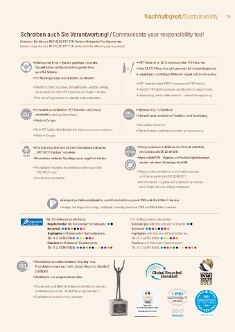 „rPET RECY-Zeichen“ versehen. zertifiziert nach ISO 22196-2011.