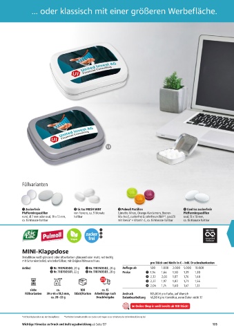 Artikel u Nr. 110760500, 20 g w Nr. 110760502, 20 g Auflage ab 500 1.000 2.000 5.000 10.000