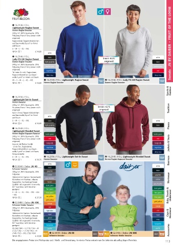 S – M – L – XL – XXL $ 16.2156 | F.O.L. Lightweight Set-In Sweat / 16.2140 | F.O.L. Lightweight Hooded Sweat