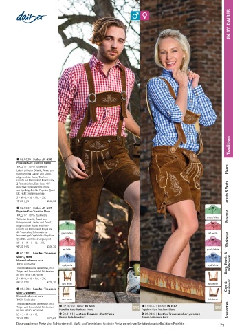 XS – S – M – L – XL $ 60.3101 | Leather Trousers short/men / 60.3203 | Leather Trousers short/women