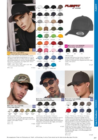 6 € 16,50 Flexfi t®-Band, Frontpanel verstärkt, mittleres Kappenprofi l,