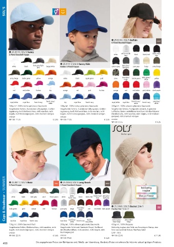 Caps & Headwear • SUMMER / 25.8811 | SOL'S Buzz sand forest green 1 25.0594 | SOL'S Long Beach black/royal dark grey/ 4 25.3998 | SOL'S Bucket 2 in 1 r i agbar i g e