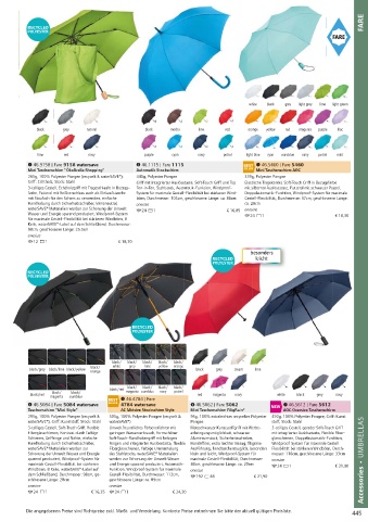 Handhabung durch Sicherheitsschieber, Ringen und integrierter Auslösetaste, fl exible Handöffner, extra leichter Bezug, fi ligrane Windproof-System für maximale Gestell-