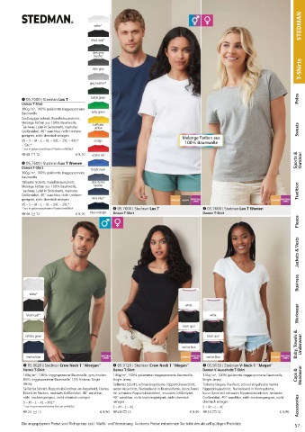 $ 05.9020 | Stedman Crew Neck T "Morgan" / 05.9120 | Stedman Crew Neck T "Megan" 1 05.9130 | Stedman V-Neck T "Megan"