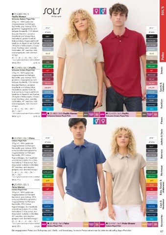 * nur in gekennzeichneten Farben erhältlich . 25.4440 | Sol's Pacific Women 3 25.4439 | Sol's Pacifi c