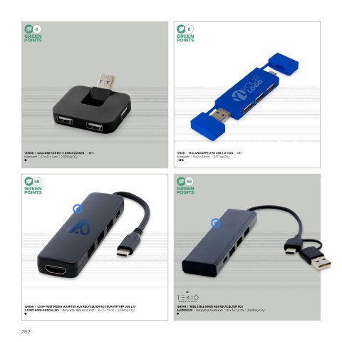 123598 | GAIA USB HUB MIT 4 ANSCHLÜSSEN | HIPS 124251 | MULAN DOPPELTER USB 2.0-HUB | ABS