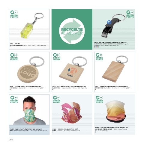 SCHLÜSSELANHÄNGER | Acryl | 1.5 x 1.5 x 4 cm | 0.190 kg kg CO 2 e Aluminium | 6 x 1 x 2.6 cm | 0.040 kg kg CO 2 e