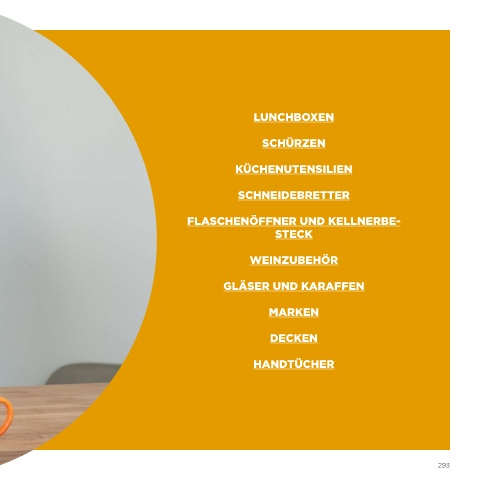 LUNCHBOXEN SCHÜRZEN KÜCHENUTENSILIEN SCHNEIDEBRETTER FLASCHENÖFFNER UND KELLNERBE- STECK WEINZUBEHÖR GLÄSER UND KARAFFEN MARKEN DECKEN HANDTÜCHER 293