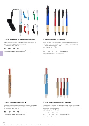 Wir stellen unseren vielseitigen Korkstift mit vier verschiedenen Wir präsentieren unseren Papier-Kugelschreiber mit vier Schreibfarben.