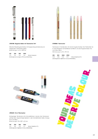 integriertem Textmarker (gelb). in verschiedenen Schreibfarben erhältlich und der Kugelschreiber hat