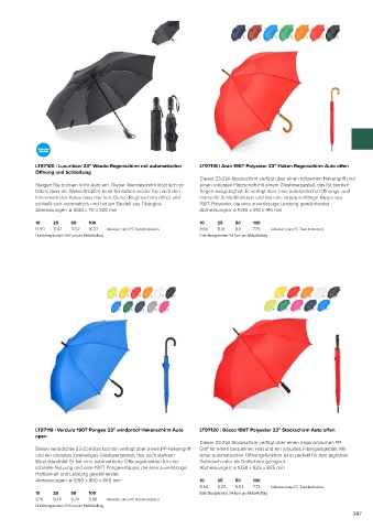 LT97119 | Verdure 190T Pongee 23” windproof Hakenschirm Auto LT97120 | Bosco 190T Polyester 23” Stockschirm Auto offen