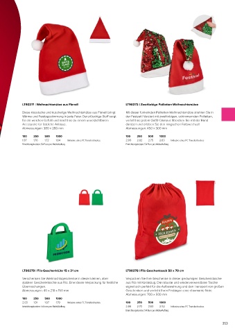 LT90271 | Weihnachtsmütze aus Flanell LT90272 | Zweifarbige Pailletten-Weihnachtsmütze