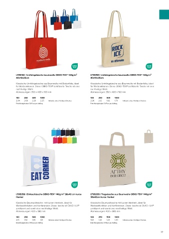LT95256 | Einkaufstasche OEKO-TEX® 140g/m² 38x42 cm kurze LT95255 | Tragetasche aus Baumwolle OEKO-TEX® 140g/m²