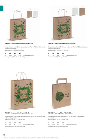 LT91622 | Kraftpapierbeutel 90g/m² 18x8x22cm LT91623 | Kraftpapiertüte 90g/m² 22x10x31cm