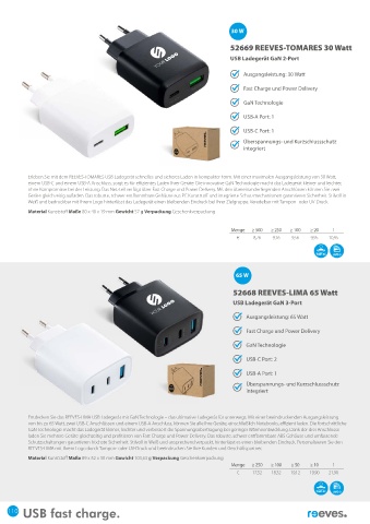 Erleben Sie mit dem REEVES-TOMARES USB Ladegerät schnelles und sicheres Laden in kompakter Form. Mit einer maximalen Ausgangsleistung von 30 Watt,