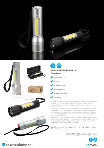 seitlichen COB-Leuchte. In Höhe des Kopfes der Taschenlampe befindet sich ein