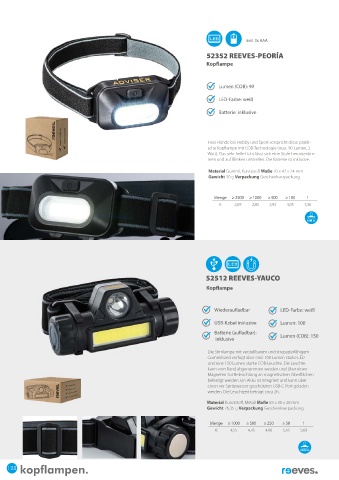 sche Kopflampe mit COB-Technologie (max. 90 Lumen, 2