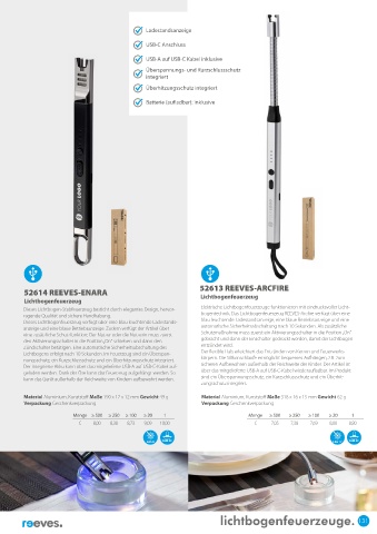 ragende Qualität und sichere Handhabung. bogentechnik. Das Lichtbogenfeuerzeug REEVES-Arcfire verfügt über eine