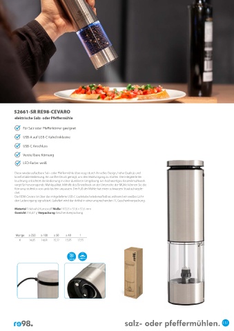 Diese wiederaufladbare Salz- oder Pfeffermühle überzeugt durch ihr edles Design, hohe Qualität und