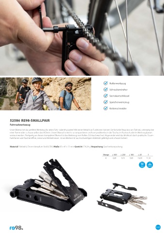 verstaut werden. Einzigartig an diesem kompakten Biketool ist das Werkzeug zum Reifen-/Schlauchwechsel. Abgerundet wird das Multitool durch praktische Zusatz-