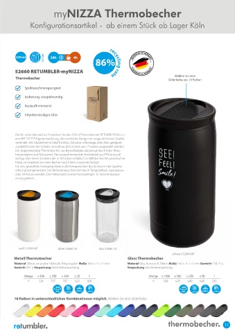 Thermobecher Sliderfarbe aus 18 Farben