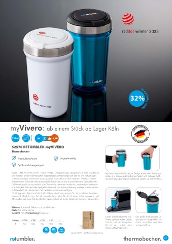 und Kunden einen Thermobecher mit einer großen Füllmenge von 350 ml und hervorragen- zielle Form erlaubt jederzeit einen festen und sicheren Griff –