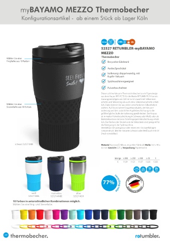 Sleevefarbe aus 18 Farben wählen. Auf Grund seiner Doppelwandigkeit, der Vakuum-