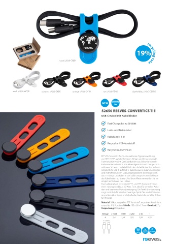 Das Ladekabel aus recyceltem PET- und TPE-Kunststoff bietet