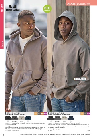 300g/m², 70% doppelt einlaufvorbehandelte gekämmte ringgesponnene Bio-Baumwolle, 350g/m², 100% gekämmte ringgesponnene zertifizierte Bio-Baumwolle