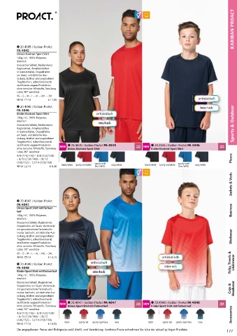 220g/m², 81% recyceltes Polyester, 19% Elasthan 95% Baumwolle, 5% Elasthan 130g/m², 50% Polyester, 25% Baumwolle, 25% Viskose, zertifizierte vegane Produktion NEW 20.4047 | Kariban ProAct PA 4047 NEW 20.4048 | Kariban ProAct PA 4048