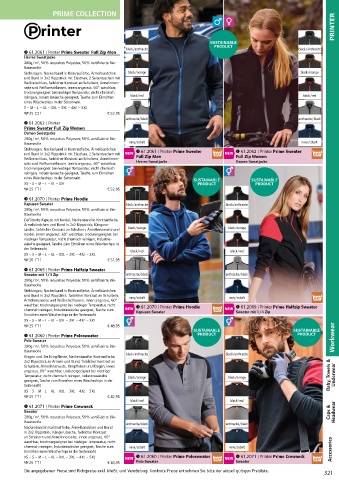 NEW 61.4030 | Printer Prime T Men NEW 61.4031 | Printer Prime T Women XS – S – M – L – XL – XXL Kordel, innen angeraut, 60° waschbar, trocknergeeignet bei