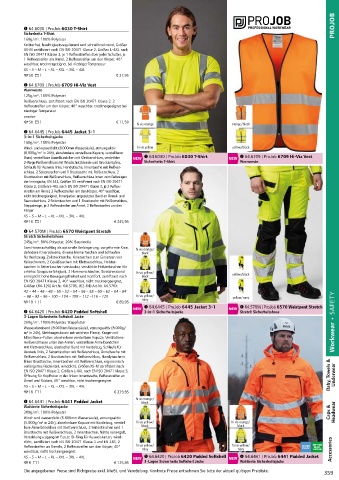 Ärmelbündchen mit Klettverschluss, (8.000g/m² in 24h), abnehmbare verstellbare Kapuze, verstellbarer 64.6030 | ProJob 6030 T-Shirt 64.6709 | ProJob 6709 Hi-Viz Vest