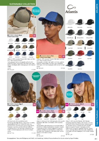 162g/m², Schirm und Front: 100% recyceltes Polyester, 280g/m², 100% Baumwoll-Twill, Mischgewebe aus 270g/m², 100% recyceltes Polyester, Canvas, Seiten und BEST 33.0120 | Atlantis Zion