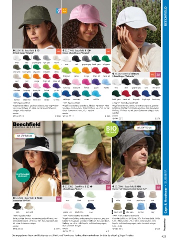 Caps & Headwear • SUMMER 53.0653 | Beechfield B 653 a 144 b 12 € 6,35 53.788R | Beechfield B 788R 53.63NB | Beechfield B 63NB 53.090N | Beechfield B 90N sand Caps & Headwear • SUMMER