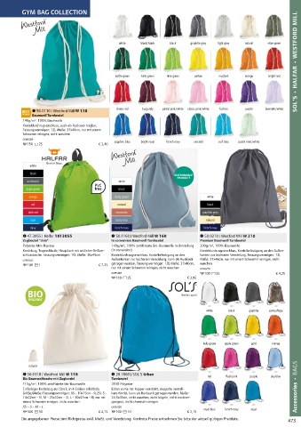 Accessories • BAGS a 400 b 50 € 1,70 140g/m², 100% Baumwolle 210g/m², 100% zertifizierte Bio-Baumwolle, Fairtrade, Twill 50.0118 | Westford Mill W 118 26.7060 | SOL'S Urban red flash pink purple sky blue Accessories • BAGS