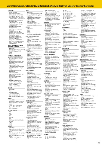 • GRS • Recycled and organic materials – • Sedex (SMETA) – einige Artikel • amfori BSCI