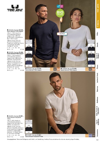 18.5062 | Tee Jays TJ 5062 18.5063 | Tee Jays TJ 5063 S – M – L – XL – XXL S – M – L – XL – XXL – 3XL 18.0530 | Tee Jays TJ 530 18.0590 | Tee Jays TJ 590