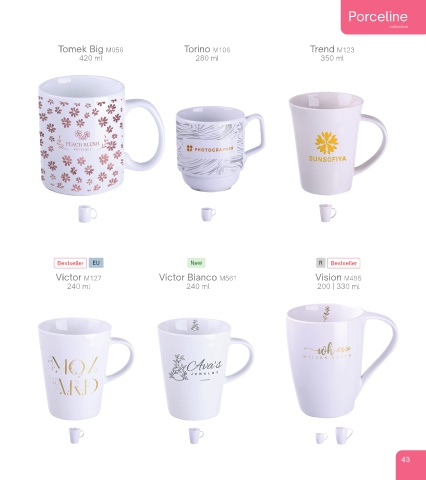 Porceline collection Tomek Big M056 Torino M106 Trend M123 420 ml 280 ml 350 ml Bestseller EU New R Bestseller Victor M127 Victor Bianco M561 Vision M495 240 ml 240 ml 200 | 330 ml 43