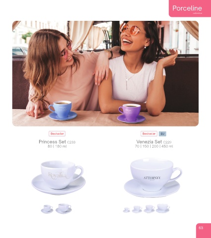 Porceline collection Bestseller Bestseller EU Princess Set C233 Venezia Set C229 80 | 180 ml 70 | 150 | 200 | 450 ml 63